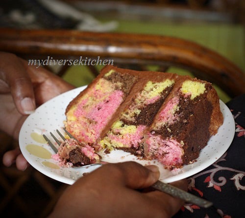 Oh wow ! That must have been some Bday party. Happy Birthday to Akshaya. That cake looks really yummy and that marbling effect is rather good too.