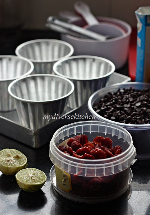 Bread and chocolate are two things I really like and lime seemed right since we don’t seem to get lemons in India! The “berries” was a bit of a problem as its monsoon (seasonal rains) in my part of the world and mango time, not berry time. But that’s when I remembered I had some cranberries in the fridge.