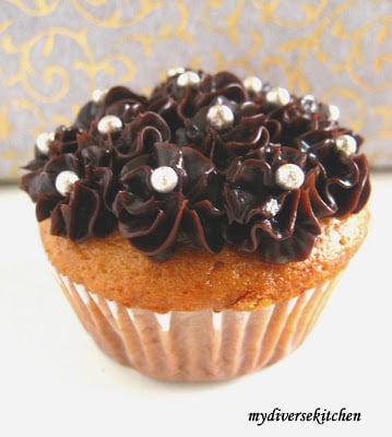 I also decided to use a chocolate ganache (melt 3/4 cup chopped chocolate + 75 ml cream + 1 tsp oil) instead of the frosting to decorate the cupcakes.