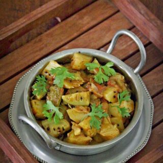 The stand out is the combination of spices that go into it and the slightly bitter-salty-sour-sweet taste. You can serve this on the side with rice or chappatis. It is a common enough recipe among those who do cook this vegetable. Each recipe would have its own minor variations in the spices used depending on who is cooking it.