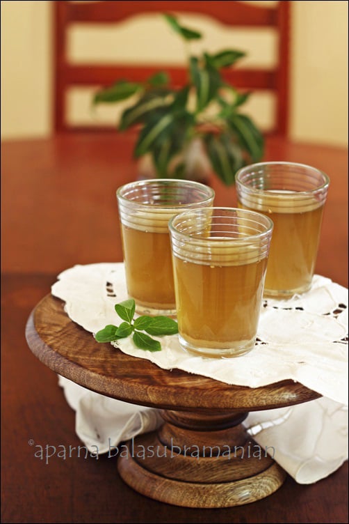 Though this drink is traditionally served as part of festivities in South India, it makes a great summer cooler and thirst quencher. Though normally served at room temperature, serve this chilled during an Indian summer and life will look better. Heidi Swanson (of the blog 101 Cookbooks) has a recipe for Sparkling Paanakam in her book, Super Natural Every Day, if you’re looking for a non-alcoholic aerated modern twist on a traditional drink!