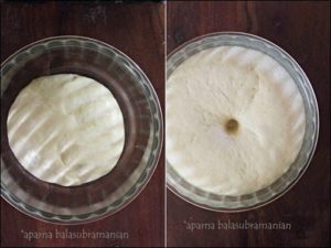 - Roll out each piece of dough, one at a time, into a circle about 4u201d in diameter. Slowly roll up the circle from one end, Swiss roll/ jelly roll style into a cylinder. Pinch the seam closed neatly, and place them on a greased or parchment lined baking sheet with the seam side facing down. Cover loosely and let them rise for an hour or so till almost double in size.