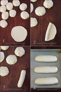 The dough for Pains au Lait is slightly enriched one but not as rich as brioche dough. The liquid in this bread is milk (no water or anything else), and of course, there’s a generous amount of butter though not too much. Pains au Lait are typically not very sweet so the pearl sugar that usually crusts the surface of these little breads adds a little sweetness and texture, not to mention aesthetic appeal.